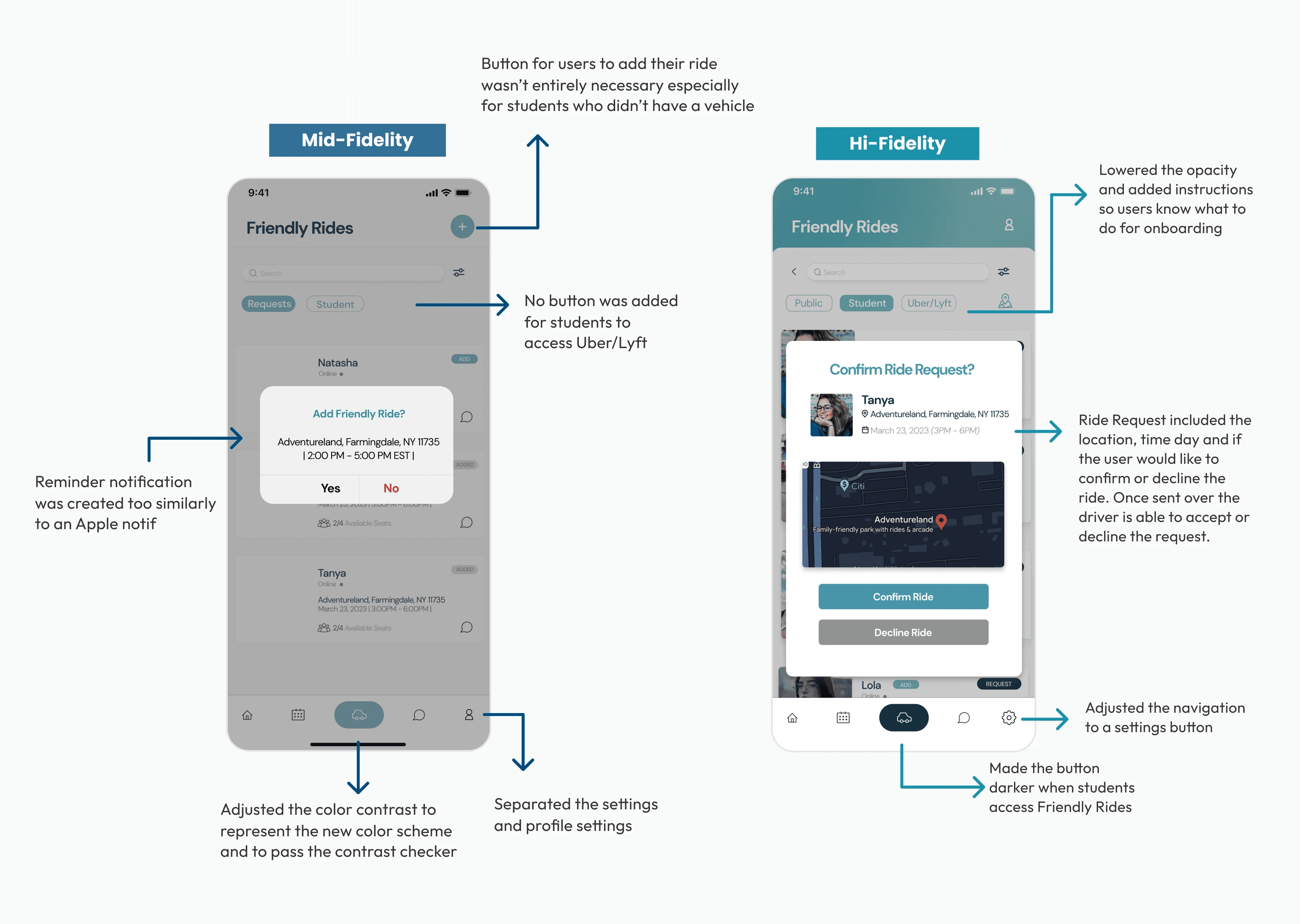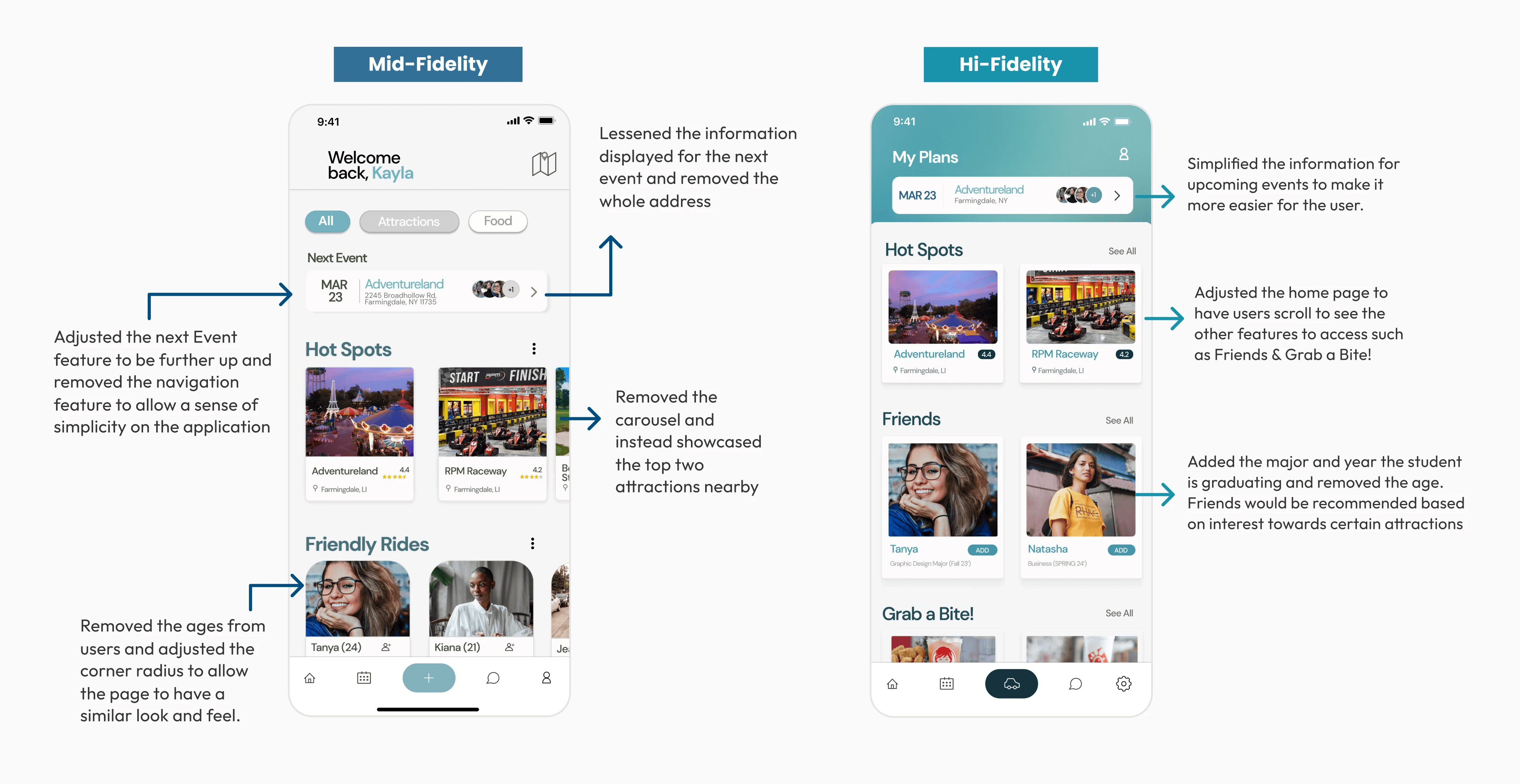 Trying to find and discover a way to have students befriend one another at first was hard but we decided on implementing the Friendly Rides feature so students can assist them to attractions while developing friendships.