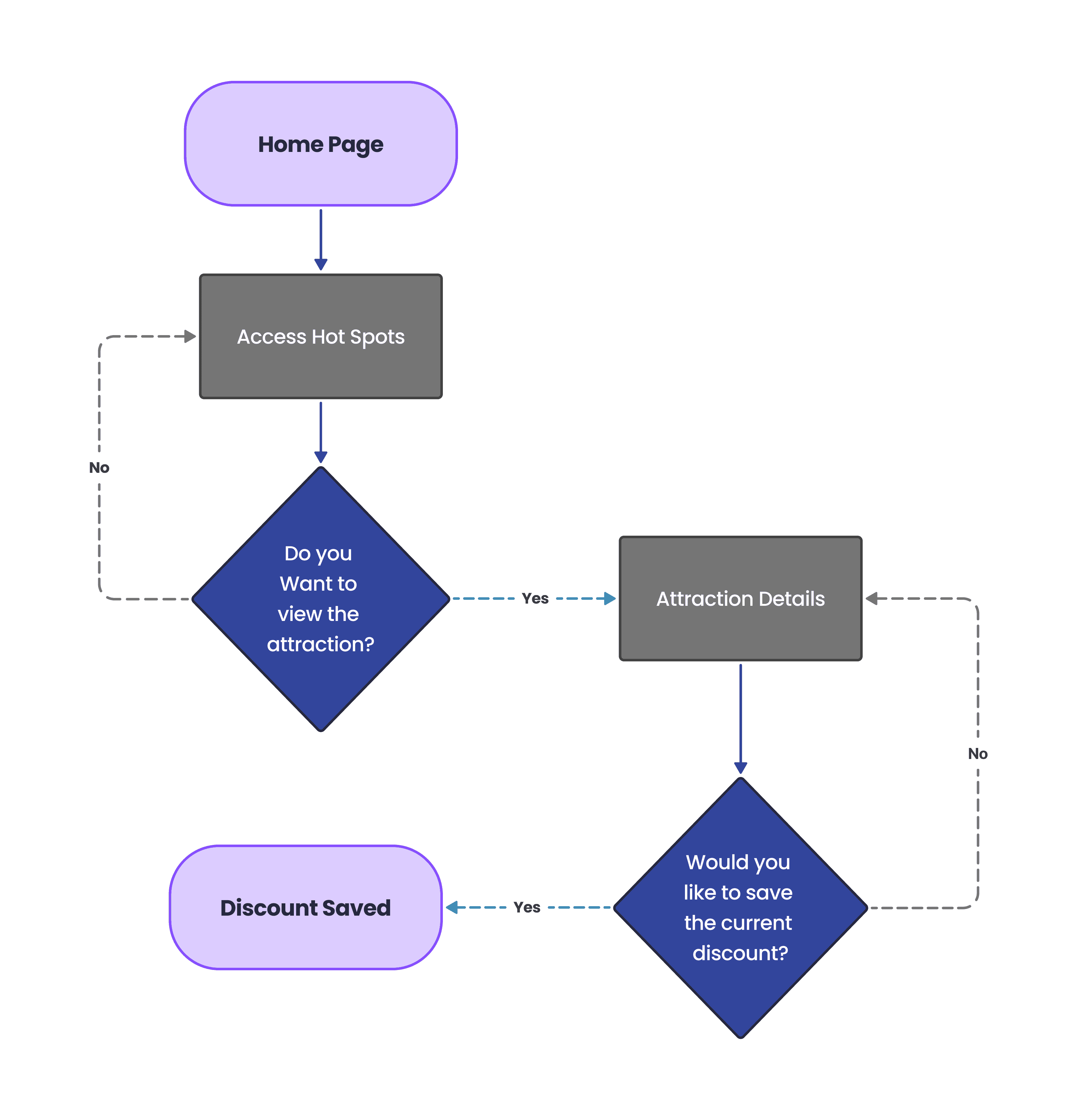Users are able to access popular hot spots from the home screen and can check out more attractions when they click See All. From there the user is able to view whichever attraction and save a discount that they feel is relevant towards their needs.