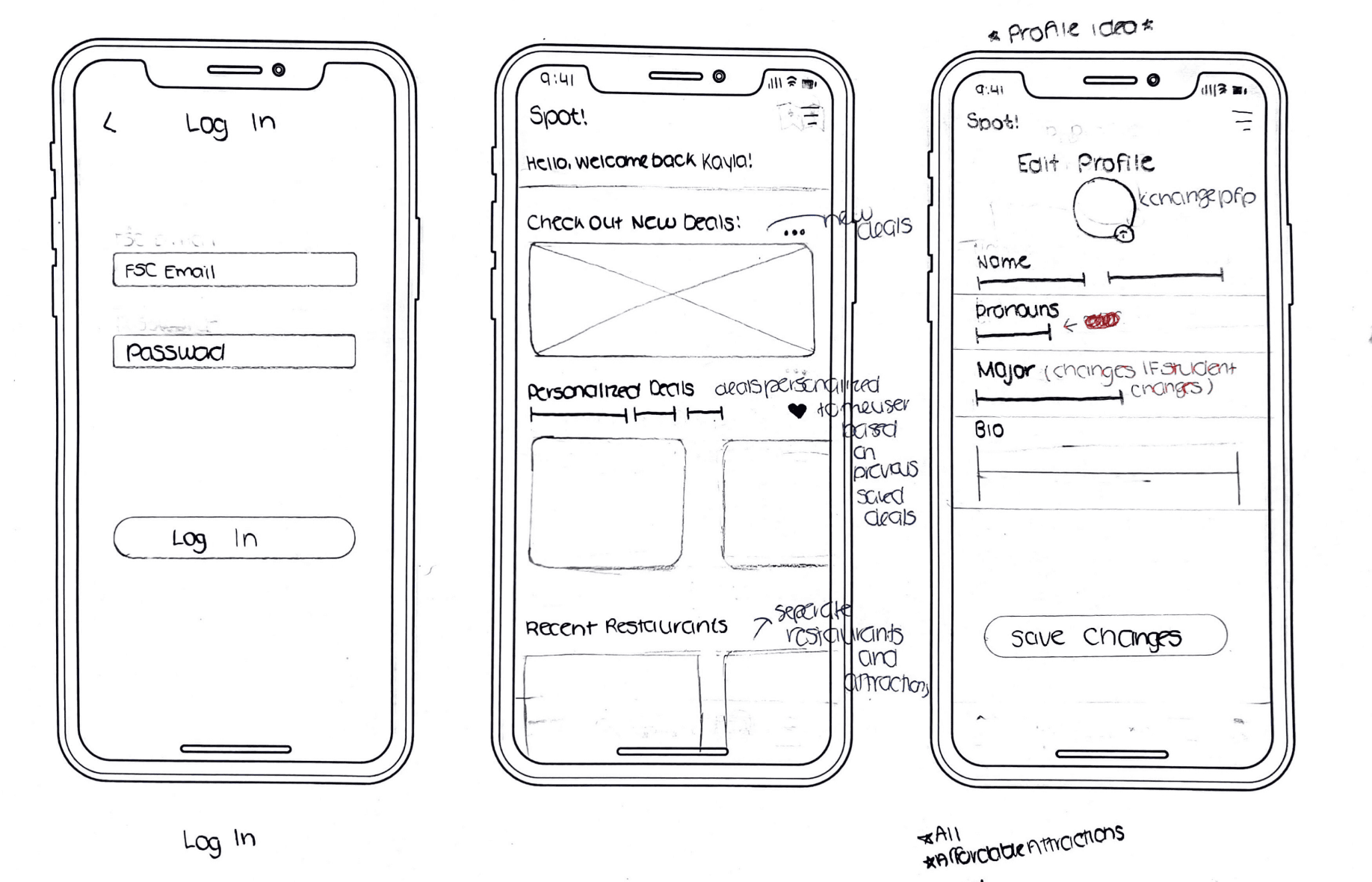 After conducting surveys and interviews we discovered who are three top personas would be. But during our second iteration of Spot! We heavily focused on Commuter Students and Residential Students. We saw students that utilized public transportation had similarities between the two.